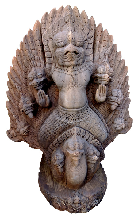 Description: The Naga is often associated in Khmer art with its hereditary enemy, the Garuda, mythological animal that is half-man and half-raptor.