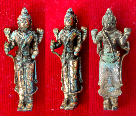 Description: The Bodhisattva Avalokiteshvara holds the lotus bud (Padma) on his lower-right-hand, the vase (Kamandalu) on his lower-left-hand, the rosary (Aksamala) on his upper-right-hand, and the book (Pustaka) on his upper-left-hand.