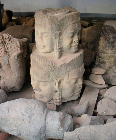 The high transport costs of the heavy stone prompted local art dealers to sell the heads of statues first and only much later the headless bodies, with which temples now abound. The standing Buddhas of the Khmer met with particular favour in the West. With their clean, simple lines they looked good in modern homes and demand was so great as to foster their mass production in simplified headless and limbless versions.